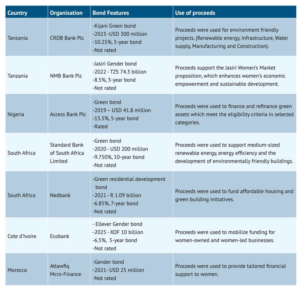 Table 1: List of Financial Institutions in Africa that have Accessed the Sustainable Finance Market