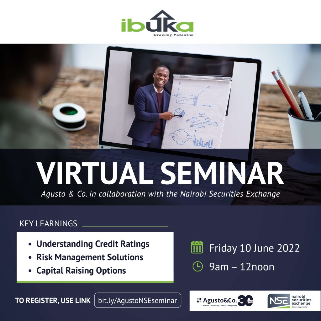 The Nairobi Securities Exchange (NSE) in partnership with Agusto & Co. will be having a Capacity Building Session for the IBUKA Companies on credit rating, risk management and capital raising options. The session is aimed at equipping IBUKA companies with the relevant expertise in credit rating and risk management in advance of capital-raising transactions.